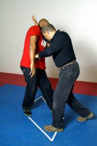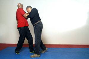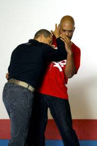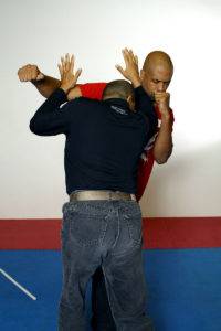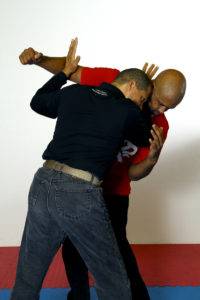 You can see some of this type of training in the book that Larry Hartsell and I wrote called “Jeet Kune Do: Entering to trapping to grappling”. While these tactics work very well if you and your opponent are squared off and you can maintain the fighting measure, sometimes you are taken by surprise. When that happens, you need to be able to defend yourself in close when you are taken unaware by your opponent.