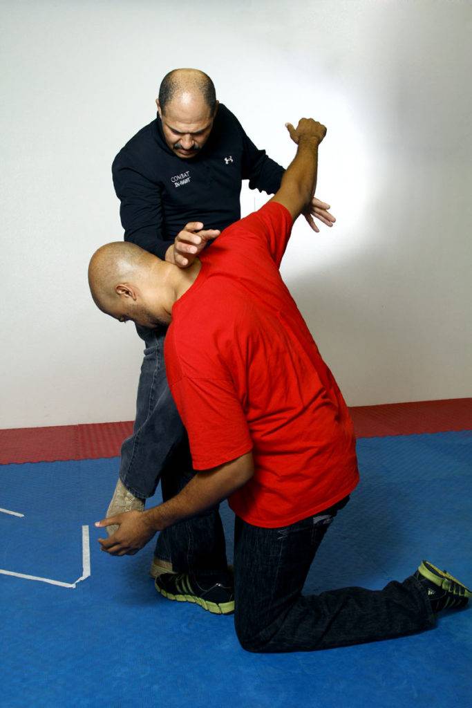 5) Dennis controls Joel’s attacking arm and forces his head down while changing direction.