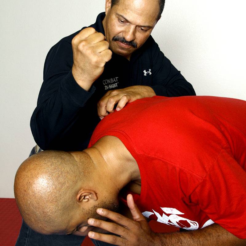 3 & 4) Dennis changes direction using a knee strike.